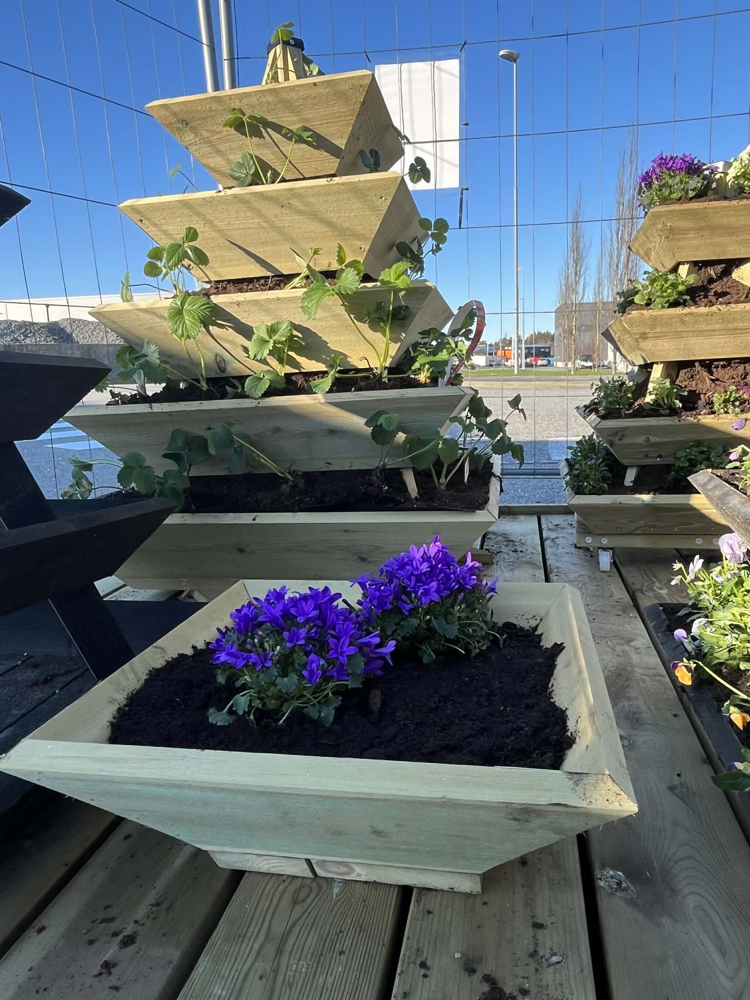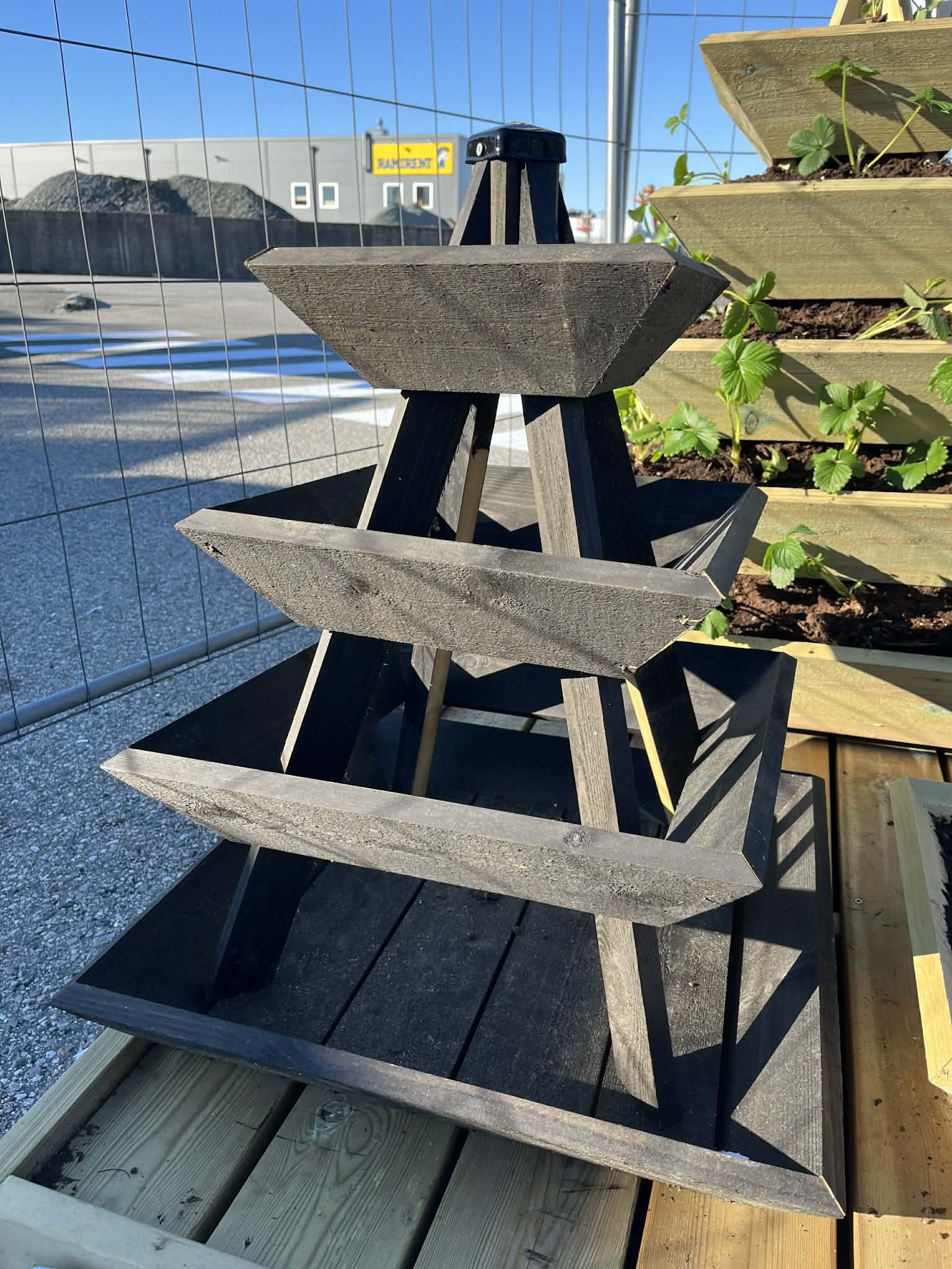 Vil du ha mykje avling på liten plass? Med vår pyramideforma blomekasse får du både eit dekorativt blikkfang og ein effektiv måte å dyrke på. Perfekt for jordbær, urter og grønsaker!