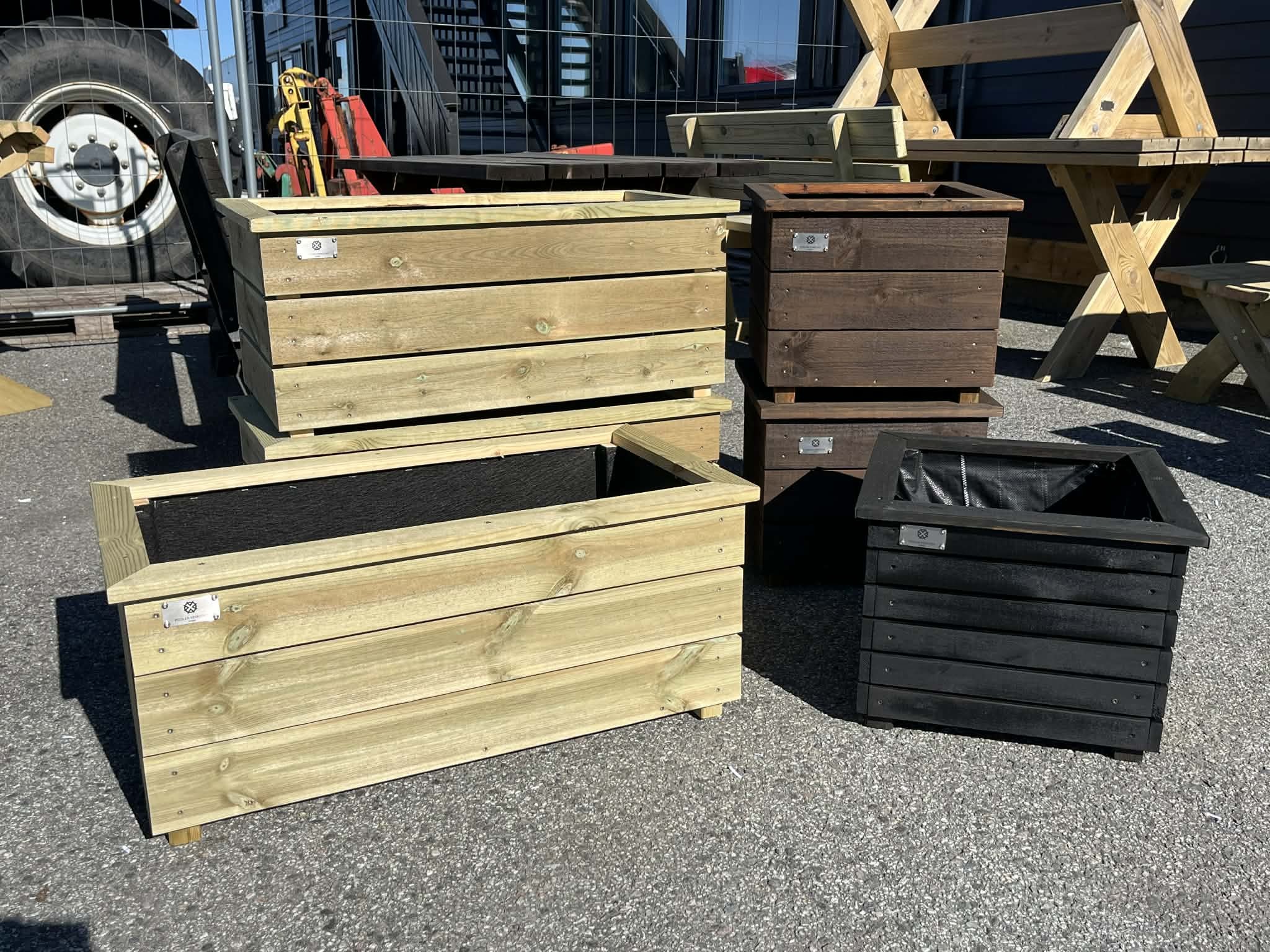 Solid og stilrein blomekasse laga i CU-impregnert materiale, perfekt for norsk klima.